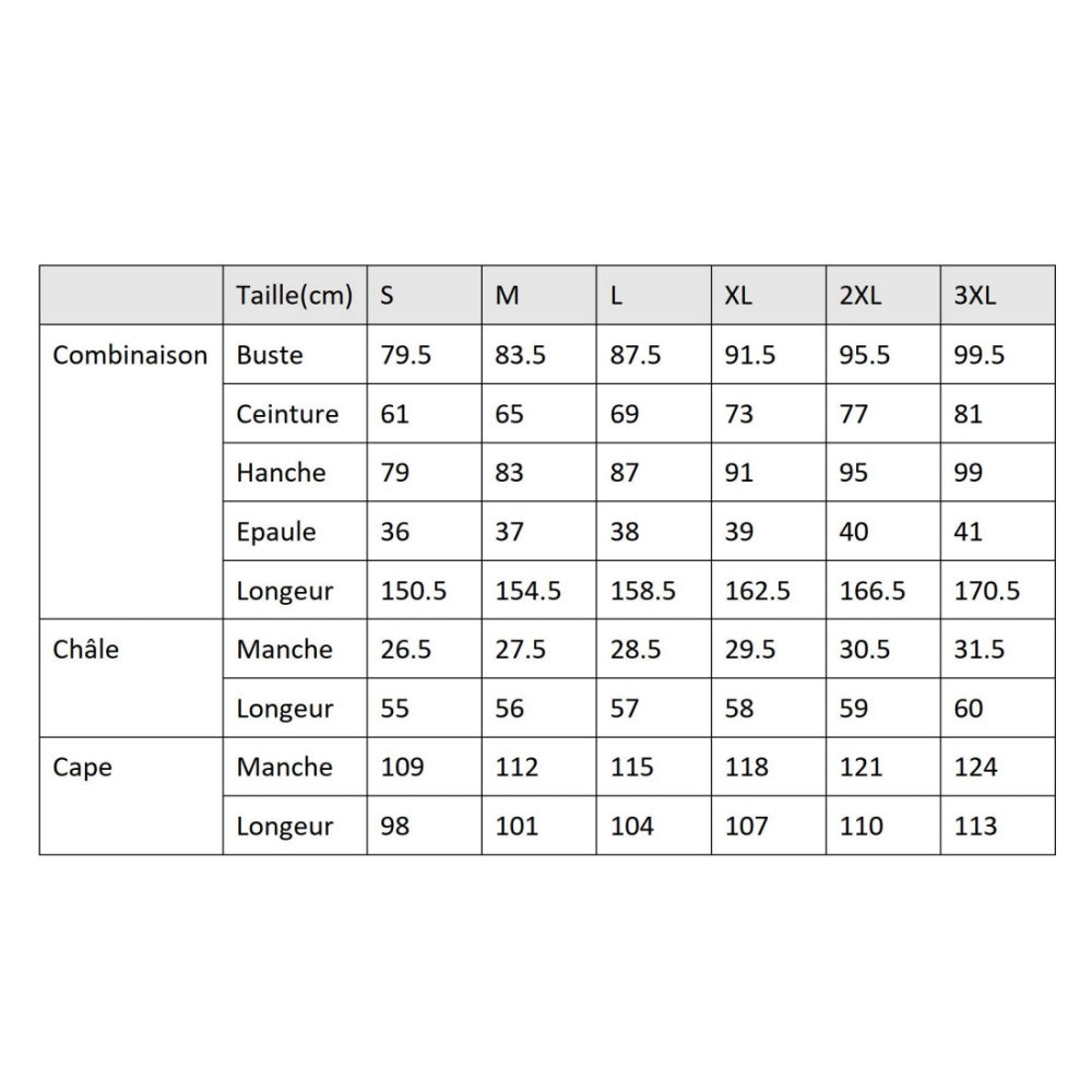 Accesoires Inclus: Combinaison, Châle, Cape