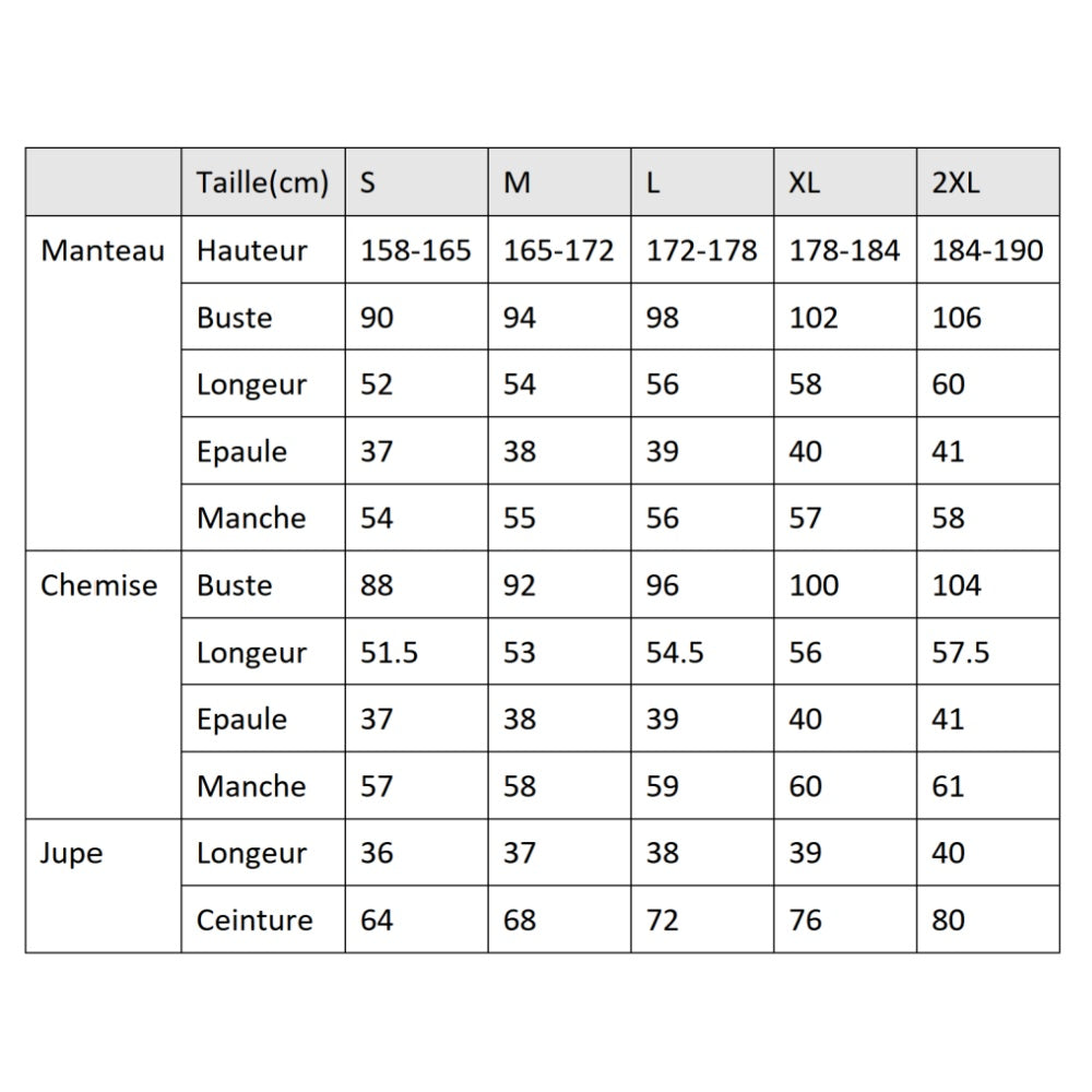 Accessoire Inclu: Manteau, Chemise, Jupe, Nœud Papillon, Elastique à Cheveux, Queue
